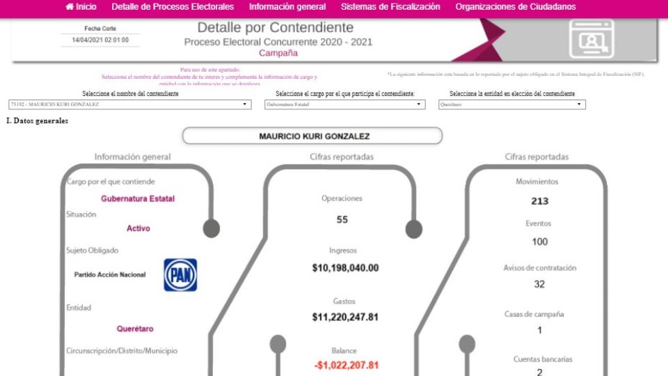 Publicado enqueretaro Elecciones 2021 en Querétaro: Kuri, candidato con más gasto en su campaña por Salvador Castillo 14 abril, 2021