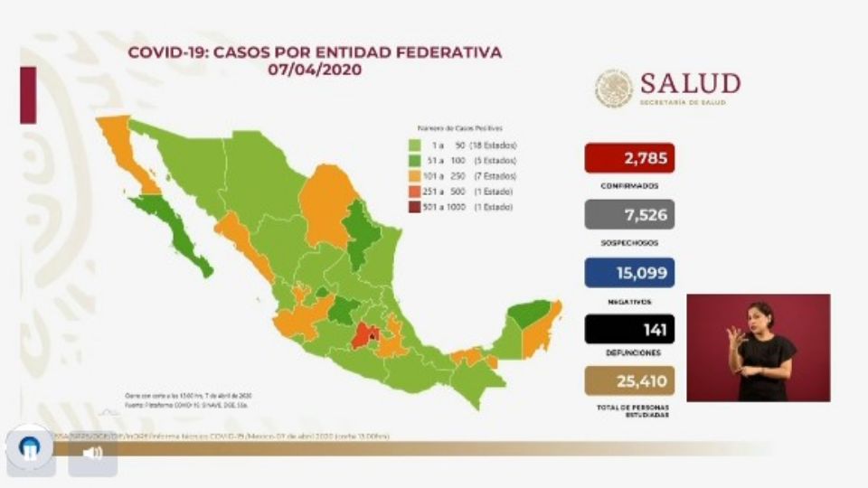 Publicado encoronavirus Suben a 141 los fallecimientos en México por Covid-19; hay 2785 casos por Redacción AM7 abril, 2020