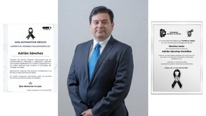 GKN Automotive México lamenta el sensible fallecimiento de Adrián Sánchez. Reconocido por su profesionalismo, liderazgo y dedicación, dejando una huella significativa en nuestra organización y en todos aquellos que tuvieron el privilegio de trabajar a su lado. Extendemos nuestras más sinceras condolencias a su familia en este momento de duelo”, dice la publicación.