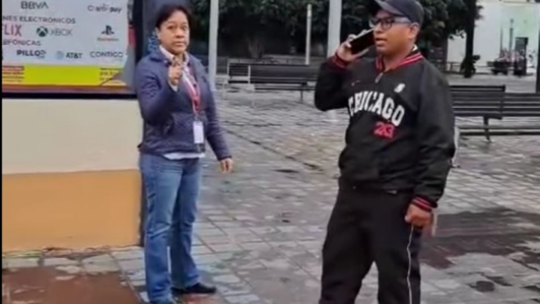 El incidente ocurrió en la plaza superior del estacionamiento subterráneo del Parque Morelos, cerca de una oficina de atención de la dependencia. El video también registra a la mujer advirtiendo “con tu comercio”, sin que hasta el momento se haya especificado el contexto o el motivo del conflicto.
