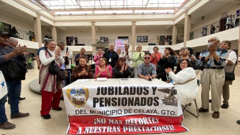 Celaya, Guanajuato.- Los jubilados y pensionados del Municipio de Celaya levantaron el plantón frente a la Presidencia Municipal, luego de más de dos meses de manifestaciones y anunciaron que demandarán al gobierno local para que se les reintegre su fondo de ahorro.