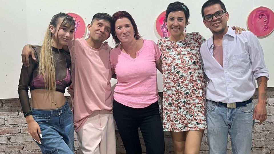 Beto Barajas, Gloria Pérez Fuentes, Andrea Herrera, Josué Velasco y Palu Herrera, quiénes forman el equipo de Bóveda Entorno del Arte. Foto: Cortesía Andrea Herrera.