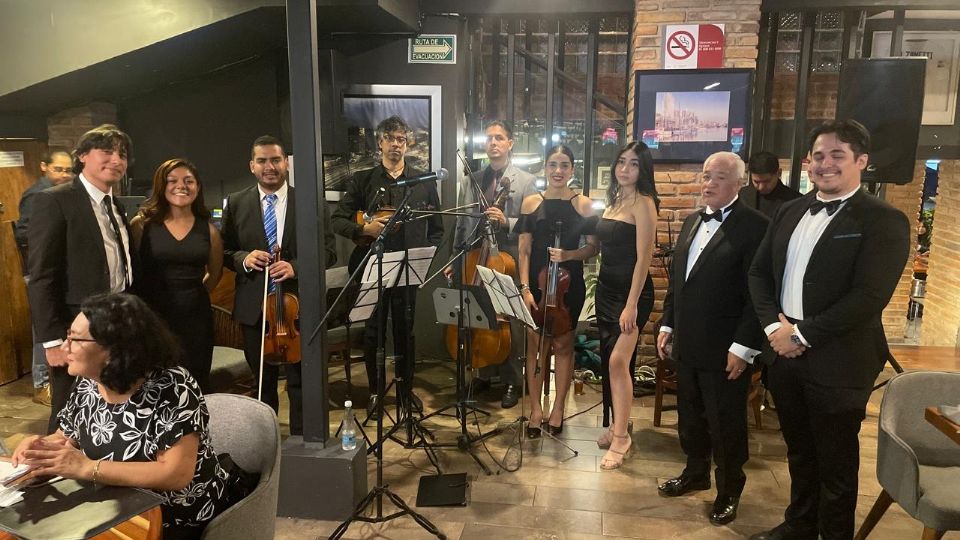 La cena literario-musical incluyó un ensamble musical, acompañado de tenores, barítonos, sopranos y mezzosopranos que hicieron estremecer a los más de 80 asistentes, que disfrutan de una cena en tres tiempos que incluyó pasta al tuco, a la mantequilla y a la bolognesa, además de ensalada y arrachera, acompañada de vino.