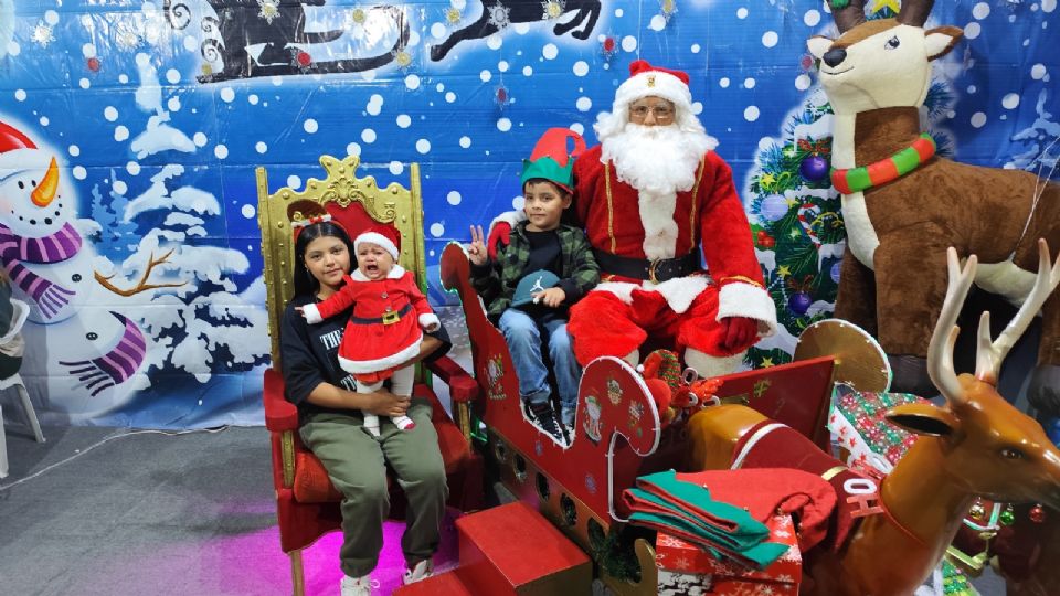 Muchos lo saludan, el hombre vestido de rojo y que contrasta con su barba blanca, les estrecha la mano a los pequeñines. Unos le corresponden sonrientes, otros lloran solo con verlo. Unos más piden tomarse la foto con él.