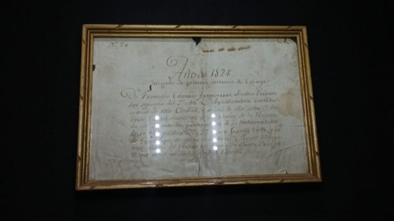 Encontramos un documento que data de 1824, que sería el más antiguo que los documentos que nosotros tenemos registrados. Habla de Tresguerras, que en la última etapa de su vida hace algunas concesiones para sus hijas y para los esposos de sus hijas. En este caso, tenemos un documento donde se le entrega una propiedad, un bien, a uno de los esposos de sus hijas”, contextualizó.