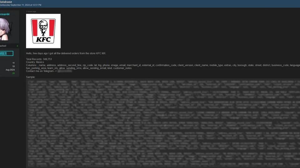 León, Guanajuato.- La base de datos de Kentucky Fried Chicken (KFC) México se vende en la deep web por 300 dólares (un estimado de seis mil pesos).