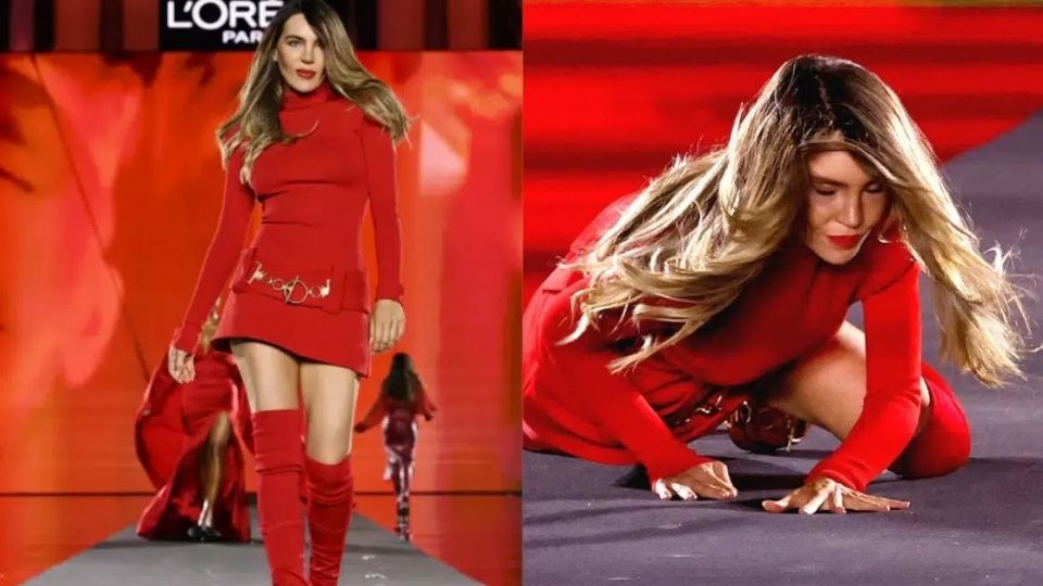 Belinda en el momento de su caída en la pasarela. Foto: X