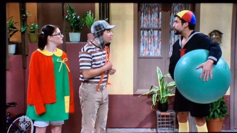 El sketch comenzó con la música original del show de Chespirito, y recreó la vecindad y hasta las risas grabadas.