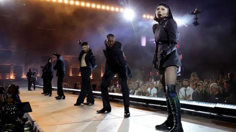 Verdad, quien ha hecho piezas para Madonna y Cate Blanchett, diseñó una chaqueta gris de corte militar, de lana italiana y con textura visual limpia y detalles de charol inspirados en arneses, que Gaga usó en la interpretación de “Born This Way“, “Shallow” y “Vanish into You“.