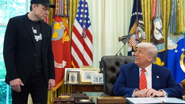 Trump elogió a Musk por “un cambio colosal en las viejas formas de trabajar en Washington” y dijo que algunos de sus empleados permanecerían en la administración. El magnate, que vestía todo de negro y llevaba una camiseta que decía “The Dogefather”, asintió mientras el presidente enumeraba los contratos que se habían recortado bajo su supervisión.
