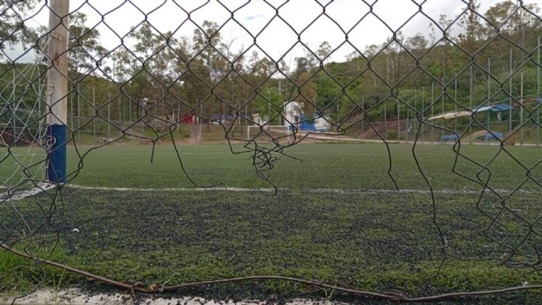 AM realizó un recorrido por la deportiva donde se observaron enmallados de las canchas destrozados, las bancas de los jugadores sin techos, pasto sintético dañado, mientras que la cancha de basquetbol infantil no tiene aros.