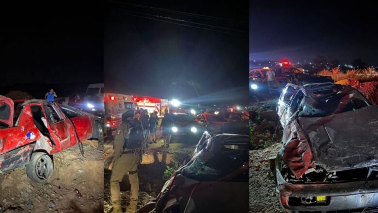 El percance se registró alrededor de las 10 de la noche del sábado, en el tramo por donde se encuentran Los Pinos; se trató de un fuerte choque frontal en el que uno de los carros implicados, debido a la fuerza del impacto, se salió del camino y volcó.