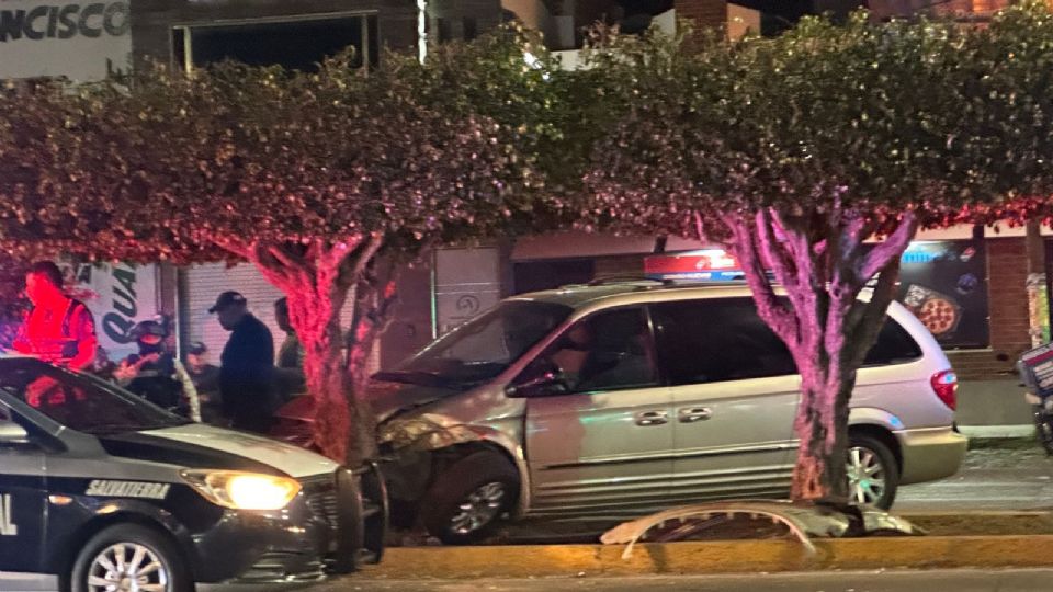 El conductor no alcanzó a frenar, ya que se encontraba a mitad del bulevar, siendo impactada por detrás por la camioneta de la Guardia Nacional y chocando contra un árbol que se encuentra sobre el camellón que divide los carriles.