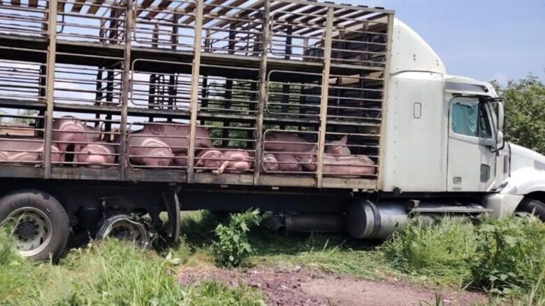 La unidad, cargada con cerdos, recorrió más de 30 kilómetros hasta una granja localizada en la carretera estatal Abasolo-Pastor Ortiz, donde fue escondida para descargarla.