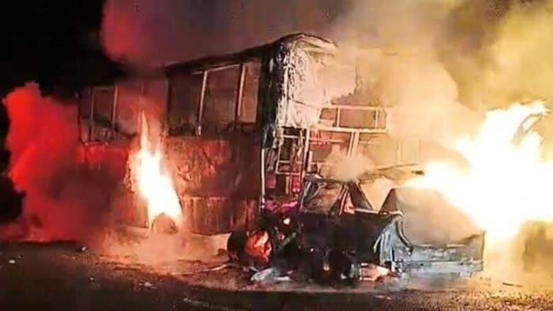 En el automóvil quedó una persona sin vida, totalmente calcinada, junto con el vehículo. El fuego también consumió el autobús en su totalidad.