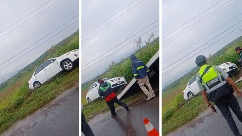 El accidente ocurrió minutos antes de las 6:00 de la mañana, a la altura de una empresa gasera. El automóvil terminó escondido entre la maleza que bordea el tramo carretero.