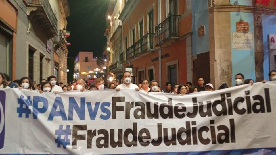 Guanajuato.- Bajo el lema “Muerte del Poder Judicial” trabajadores del Poder Judicial Federal, circuito Guanajuato, junto a una gran cantidad de militantes y simpatizantes panistas realizaron una corta marcha silenciosa y pacífica por las calles principales del Centro Histórico de Guanajuato capital.