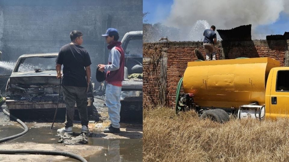 Pénjamo, Guanajuato.- Dos incendios en diferentes domicilios, uno de ellos en una pensión y el otro en un taller de hojalatería y pintura, dejó como saldo tres vehículos calcinados.