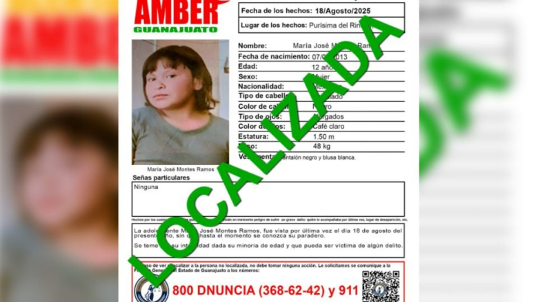 Purísima del Rincón, Guanajuato.- Autoridades activaron una Alerta Amber por la desaparición de María José Montes Ramos.