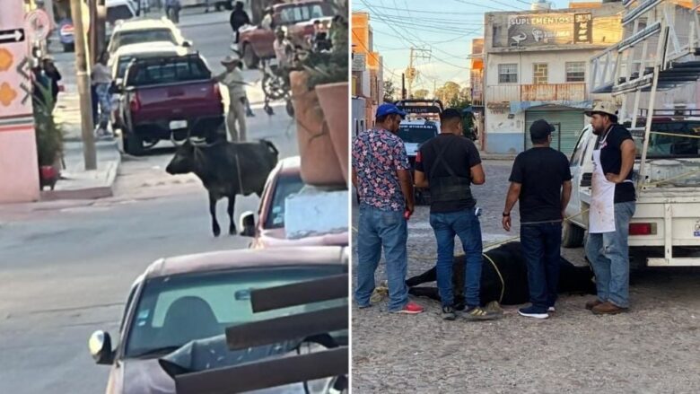 San Felipe, Guanajuato.– Tres toros que escaparon de un corral causaron destrozos en la colonia La Conchita, en el municipio de San Felipe; dos de ellos fueron sacrificados.