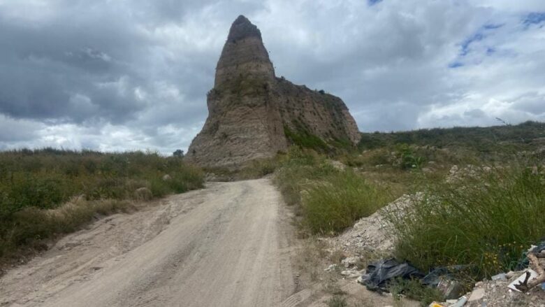 El trazo del tren cruzaba bancos de tepetate y terrenos delimitados con postes y alambre de púas. Hoy no queda nada.