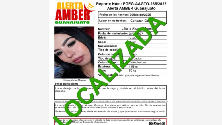 Cortazar, Guanajuato.- Familiares de la adolescente Liliana Alfonso Moreno, de 17 años, reportaron su desaparición luego de perder comunicación con ella desde este domingo 30 de marzo.
