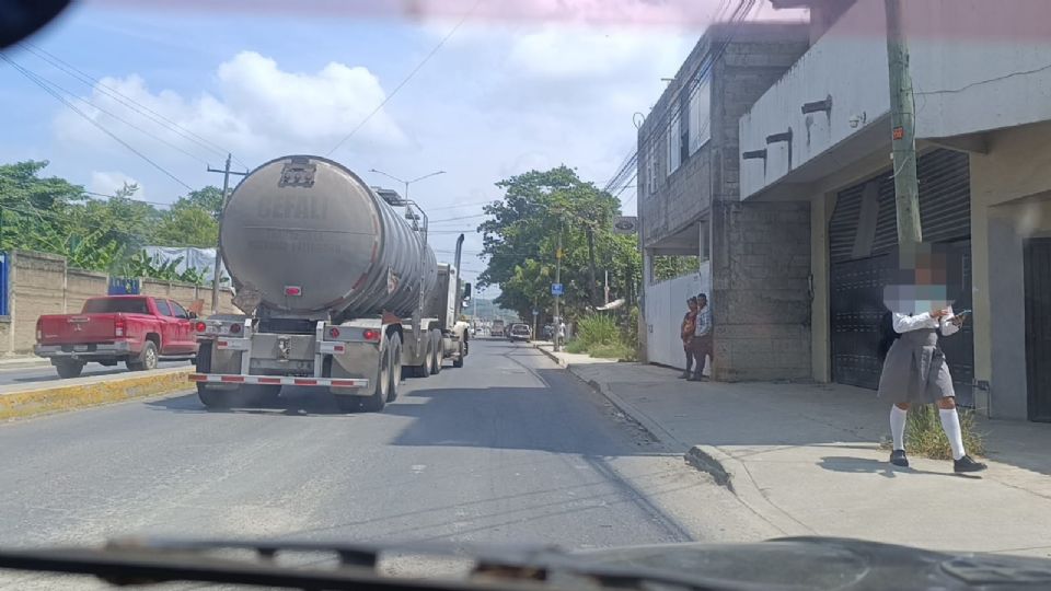 Vecinos de Pahuatlán, Huejutla, bloquean uno de los carriles de la vía federal México-Tampico, a la altura de la agencia del Ministerio Público.
