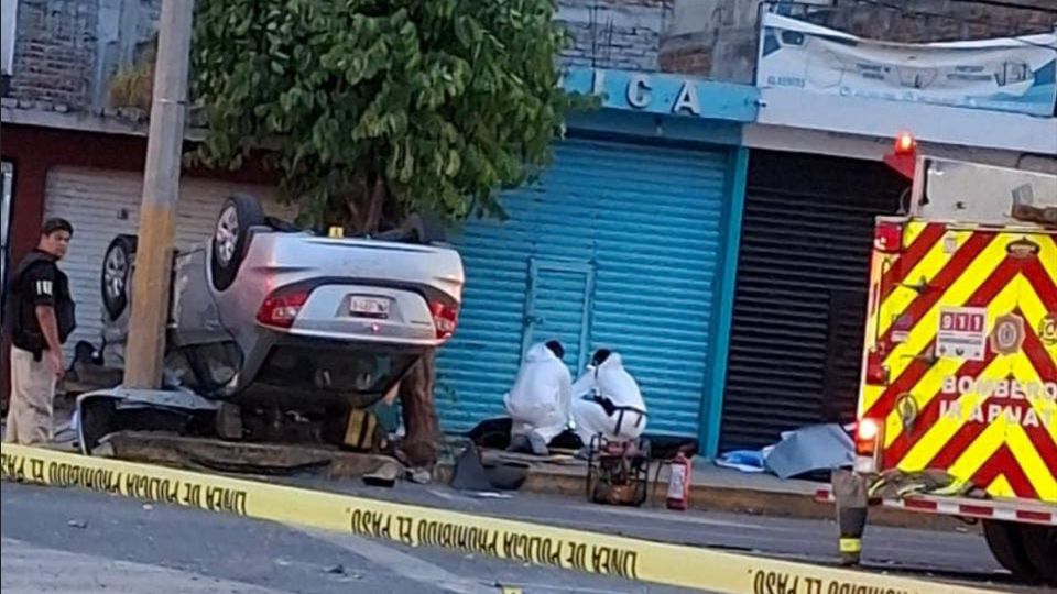 Irapuato, Guanajuato.- Un hombre y una mujer murieron, y otro hombre resultó gravemente lesionado tras volcar el vehículo en el que viajaban a exceso de velocidad, durante la madrugada de este sábado sobre el bulevar Mariano J. García, en Irapuato.