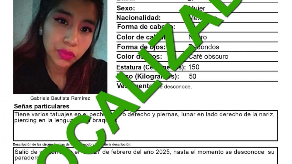 ACTUALIZACIÓN: Gabriela Bautista Ramírez fue localizada el 2 de marzo de 2025