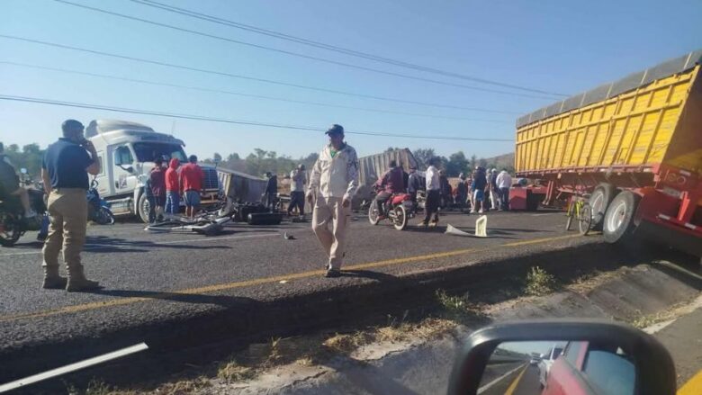Irapuato, Guanajuato.- Tras un fatal accidente ocurrido la mañana de este sábado entre dos tráileres y un vehículo particular, una persona perdió la vida prensada dentro de la cabina de uno de los tractocamiones. La carretera federal Abasolo-Irapuato se encuentra bloqueada en su totalidad.