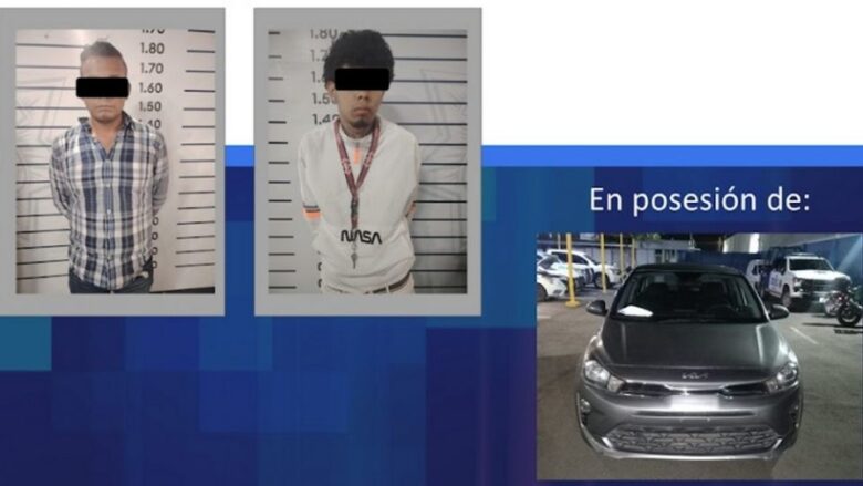 Dos de los presuntos delincuentes descendieron del Chevrolet Beat y abordaron un Kia 2023, donde ya los esperaba un cómplice.