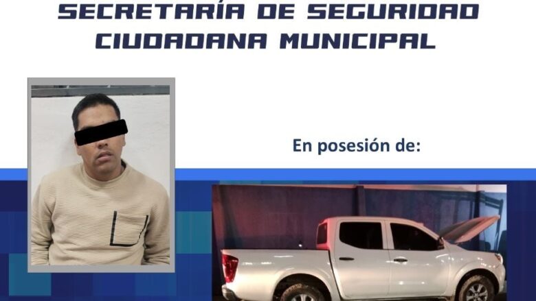 Irapuato, Guanajuato.- La coordinación tecnológica entre el sistema de arcos carreteros, el C4 y las unidades de la Policía Municipal resultó en la detención de un hombre con antecedentes penales y el aseguramiento de una camioneta con registros irregulares.