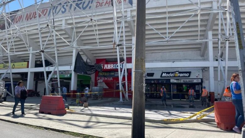 Del lado de (la calle) Grillito Cantor está una muestra de lo que es la fachada, de lo que es el recubrimiento, y estamos ya por comenzar por el lado de Guerrero, que es la parte más visible del estadio, entonces ya estamos trabajando en ello.