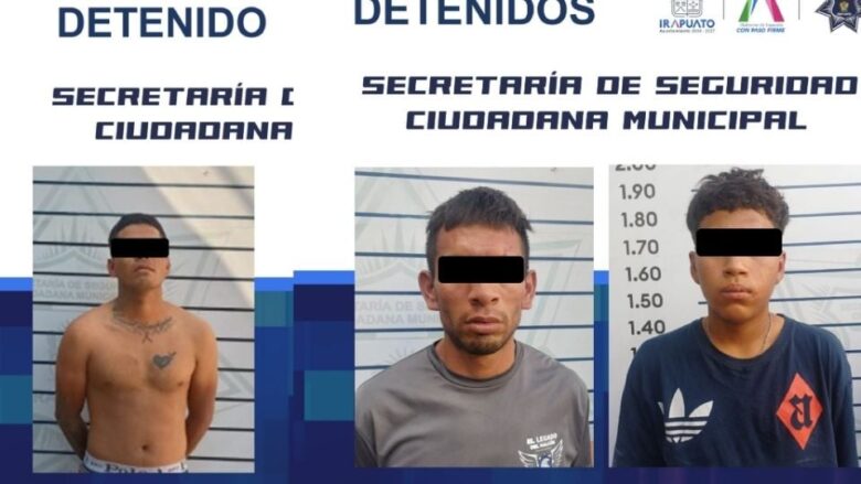 Irapuato, Guanajuato.- En distintas acciones y como parte de una rápida respuesta ante hechos delictivos, tres personas fueron detenidas por elementos de la Policía Municipal, luego de cometer robos a mano armada.