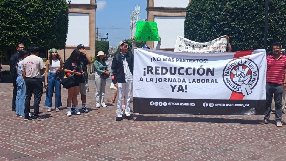 León, Guanajuato.- Un grupo de aproximadamente 20 personas integrantes del colectivo ‘Frente Nacional Yo por las 40 horas Guanajuato’, que busca que se reduzca la jornada laboral, se manifestaron este domingo en el Arco de la Calzada.