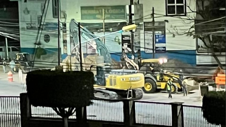 Tras el retraso en las obras, ahora los trabajadores de Proyectos y Construcciones Rames, S.A. de C.V., trabajan hasta de noche. . Foto: Antonio Lascurain