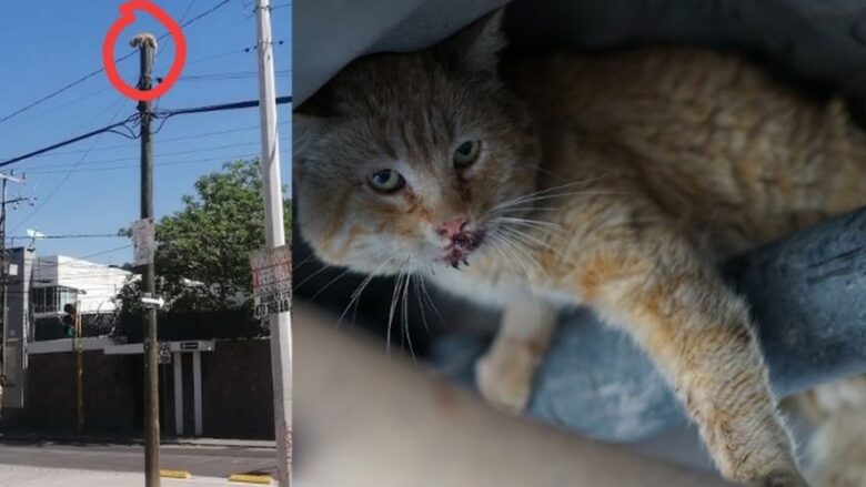 León, Guanajuato.- La mañana de este jueves 24 de abril, alrededor de las 11:00 de la mañana, un ciudadano reportó la presencia de un gato en lo alto de un poste de luz, ubicado en la calle Yuriria, esquina con Purísima, en la colonia Industrial.