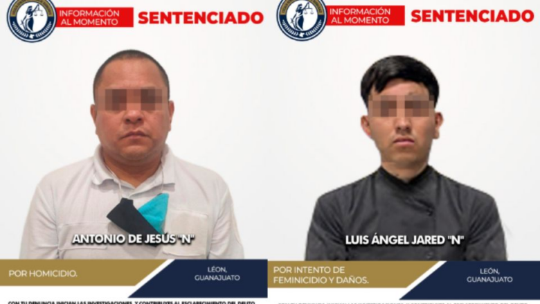León, Guanajuato.- Dos hombres fueron sentenciados, uno por el delito de homicidio y el otro por intento de feminicidio y daños.