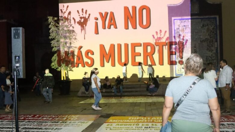 Con imágenes similares a las proyectadas la semana pasada en la fachada de la Catedral de Nuestra Señora de la Luz, el colectivo iluminó ahora con un mapping la pared del Templo de la Tercera Orden, en el jardín de la Plaza Fundadores, conminando al público en general a acompañarlo en su llamado a las y los diputados de Morena, Movimiento Ciudadano, PT y Verde Ecologista.