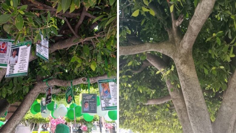 Rocío Gómez recordó que el colectivo había acordado de palabra con Luis Enrique López Oviedo, coordinador de la Dirección General de Gobierno del Municipio de León, que se les autorizaba usar el árbol para colocar las fichas de búsqueda.