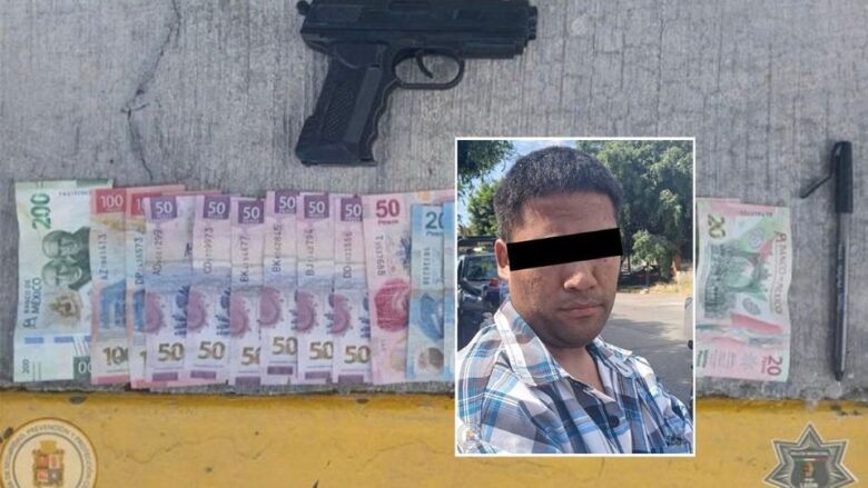 En su detención se le aseguraron más de tres mil pesos en efectivo, un teléfono celular y un arma de juguete.