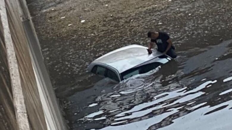 El pasado 6 de julio, un hombre fue rescatado tras quedar atrapado dentro de su automóvil en el Puente Deprimido tras la fuerte tormenta de esa tarde. Foto: Redes sociales.