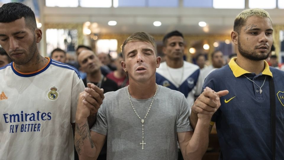 Varias personas rezan en una misa para pedir por la salud del papa Francisco en Buenos Aires, Argentina, el martes 18 de febrero de 2025. . Foto: AP