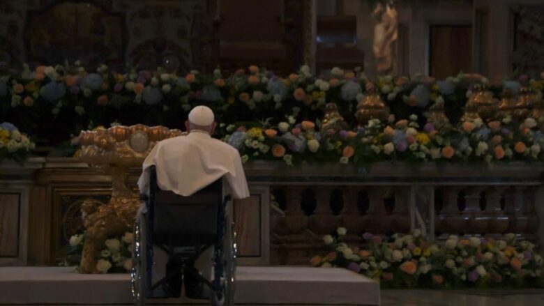 El Vaticano.- El Papa Francisco apareció por sorpresa en la Basílica de San Pedro este Sábado de Gloria y rezó antes de la Vigilia Pascual, además saludó a algunos de los fieles presentes.