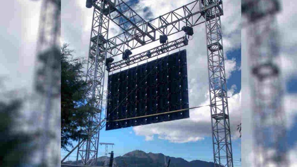 Se colocaron 8 pantallas gigantes y 10 torres lineales de sonido. Desde las 11 de la mañana se comenzaron a realizar pruebas de sonido.