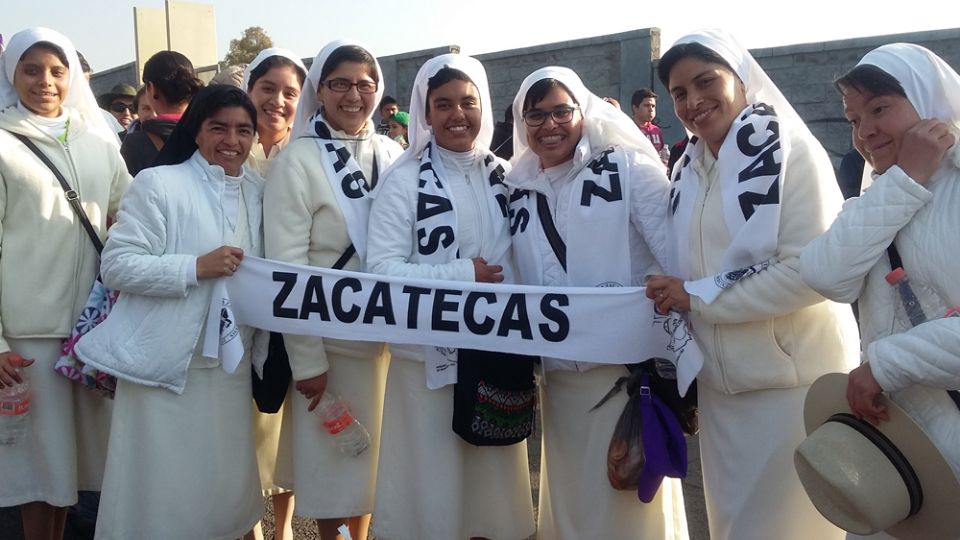 Con canciones de Ricardo Arjona y Nigga, las hermanas Oblatas Diocesanas de San José en Zacatecas, pusieron el ambiente en la fila de acceso a la puerta 6 del Estadio José María Morelos y Pavón, en la visita del Papa Francisco a Morelia.