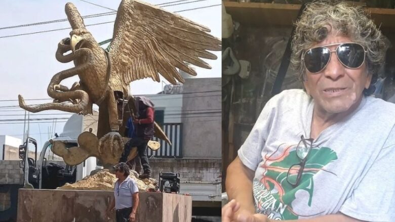 “La pieza está hecha de fibra de vidrio con resina poliéster. El problema era que tenía una estructura muy débil, por eso colapsó. Ahora ya cuenta con una estructura reforzada; sobre ella agregamos PTR, tubular de cédula 40 y otros materiales para hacerla más resistente”, explicó el escultor.