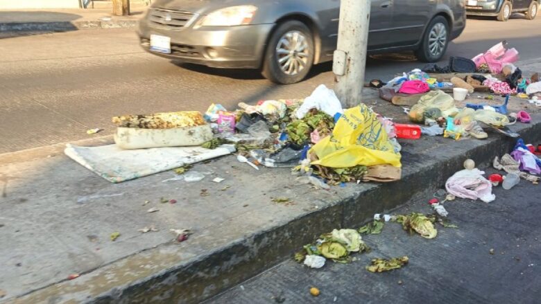 Hay gente que a cualquier hora del día deja sus bolsas con basura sobre el camellón sin importarle a qué hora pasa el camión recolector. Luego los perros la rompen y todo se riega”, señaló un comerciante cercano al mercado Tomasa Esteves.