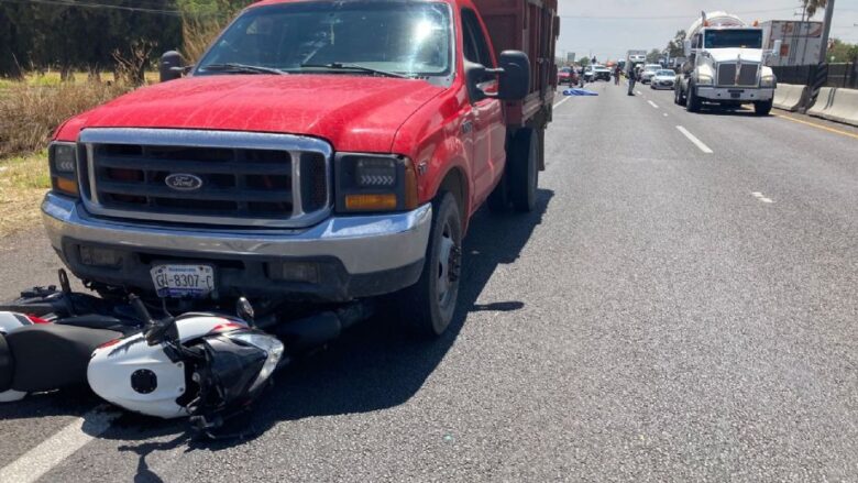 Salamanca, Guanajuato.- La caída de un tinaco que era transportado en una camioneta de carga ocasionó que un motociclista invadiera el carril contrario de la carretera libre a Celaya, lo que ocasionó ser impactado por una camioneta, falleciendo en el lugar.