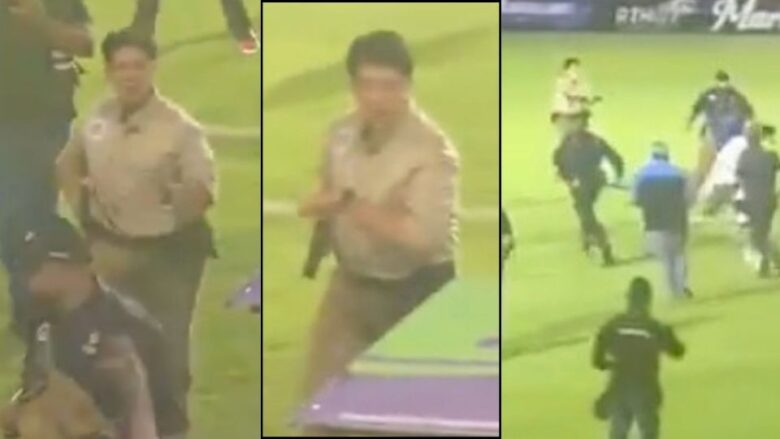 Según testigos, los jueces respondieron con insultos a la afición, acción que calentó los ánimos, haciendo que muchos intentaran entrar al campo. La gente de seguridad intentó evitarlo, pero también fueron agredidos.